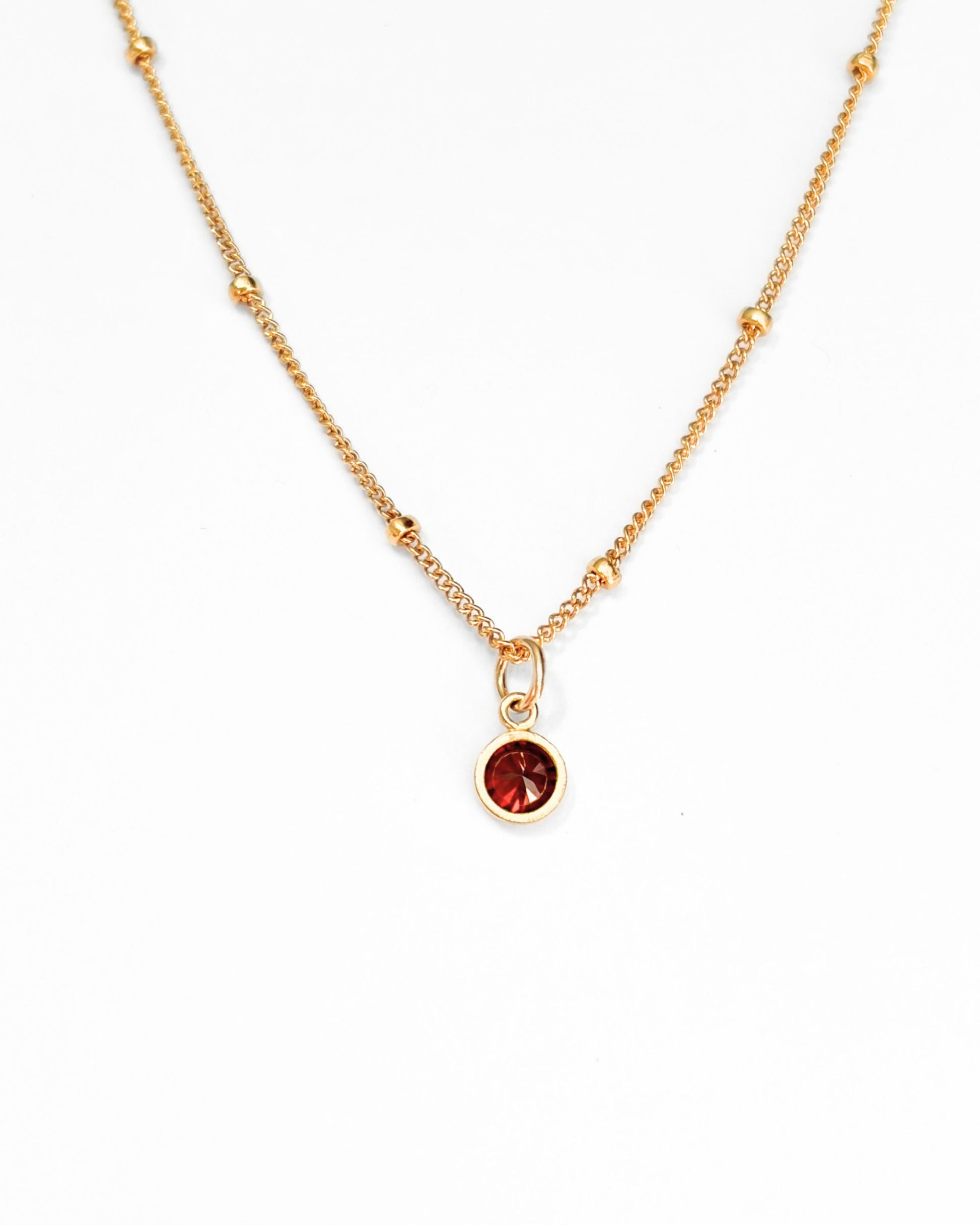 This dainty 14k gold filled necklace features a tiny birthstone charm designed for everyday wear. Minimal and refined, it adds a subtle pop of colour while keeping your look effortlessly polished.